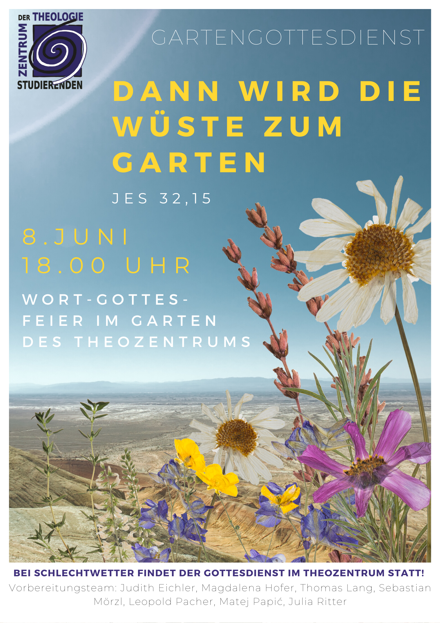 Bei Schlechtwetter findet die Feier im Theozentrum statt.