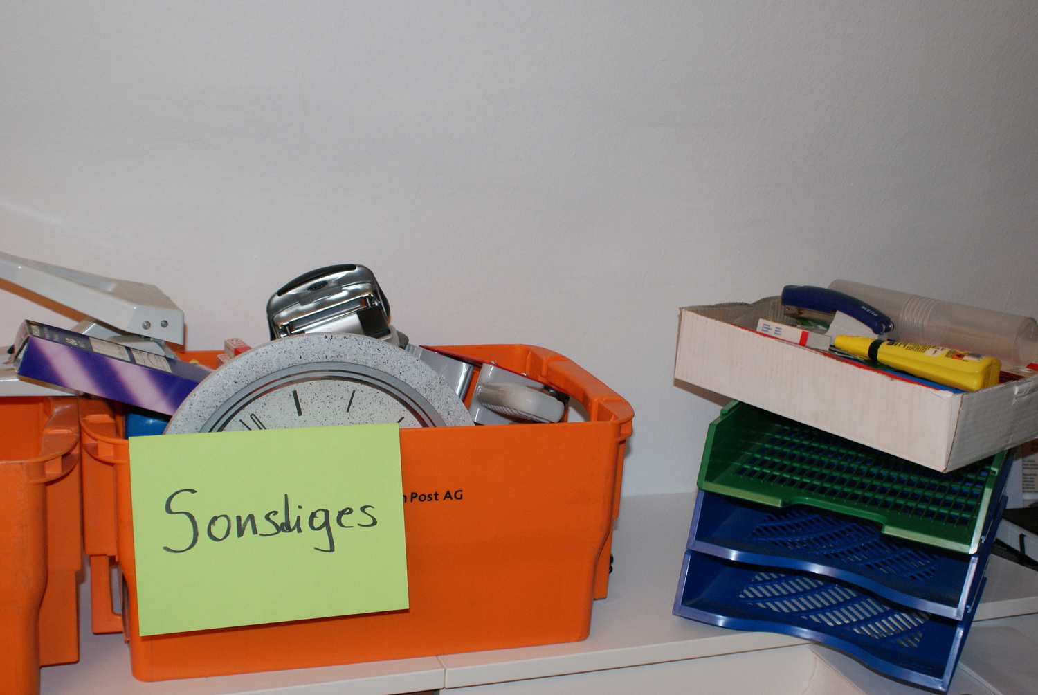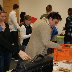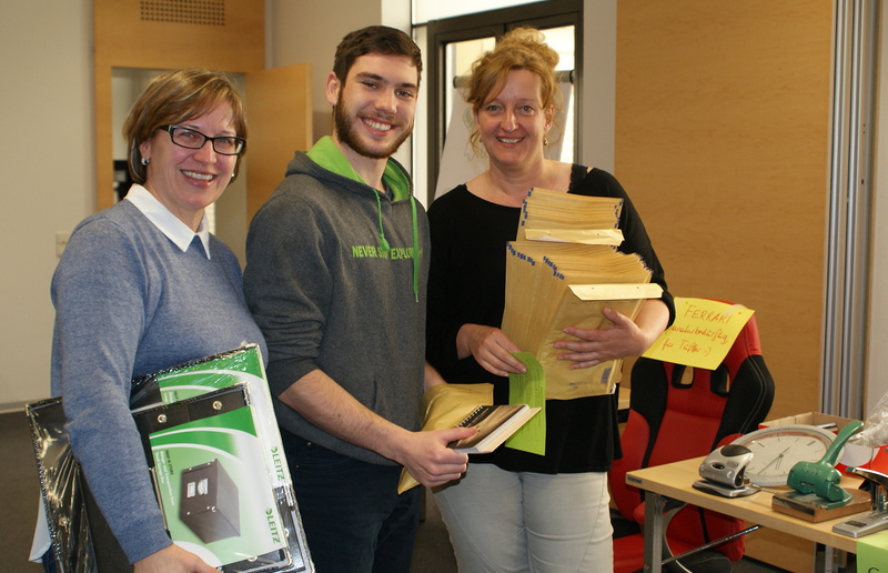 Egal ob Mappen, Kleber, Scheren, Locher, Stifte etc. - alles, was von diversen Abteilungen nicht mehr gebraucht wurde stand zur freien Entnahme im Parterresaal bereit und wartete auf einen neuen Besitzer. So wurde bereits verstaubten Dingen neuer Glanz verliehen.