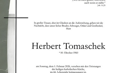 Herbert Tomaschek, geboren 1960 in Thörl, war ein Mensch mit wachem Geist, feinem Humor und großer musikalischer Begabung. Am Sonntag, dem 1. Februar, am Vortag zu Mariä Lichtmess, schloss er für...