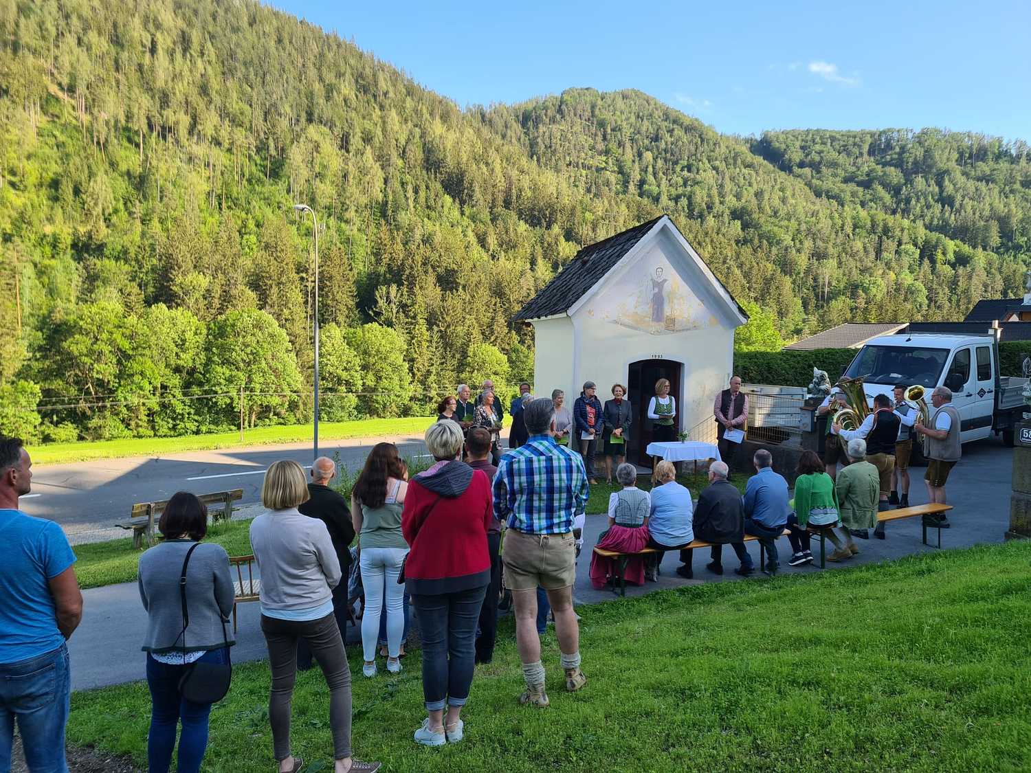 Dankbar für die Gemeinschaft trafen sich Menschen der jeweiligen Nachbarschaft zum gemeinsamen Gebet und danach zu einem gemütlichen Austausch. In Peggau und bei der Glawoggerkapelle in Kleinstübing wurde die Andacht auch vom Gesangsverein Deutschfeistritz – Peggau mitgestaltet.
