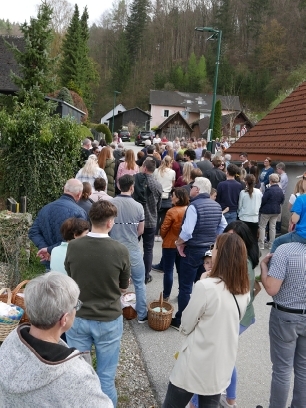 Am Karsamstag, 30. März 2024, kamen wieder viele Menschen auf dem Dorfplatz in Hinterberg zusammen, zur alljährlichen Segnung der Osterspeisen, ehem. "Fleischweih".