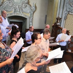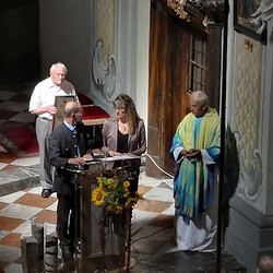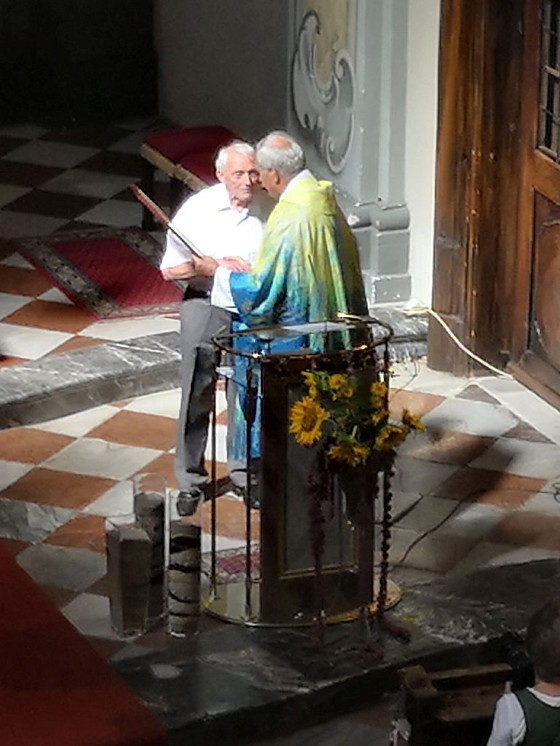 Tragischerweise wurde der Feiertag vom plötzlichen Tod unseres langjährigen Organisten und Chorsängers Franz Grasmugg überschattet. So erhielt das abschließende Segenslied, das eigentlich als Gruß und Dank des Chors an unseren scheidenden Pfarrer Pater Simon gedacht war, eine besonders tröstliche Bedeutung. Das für das 800-Jahr-Jubiläum der Diözese Graz-Seckau komponierte Stück verwendet im Refrain einen Text von Edith Stein: „Ohne Vorbehalt und ohne Sorgen leg´ ich alle Zeit in deine Hand“.