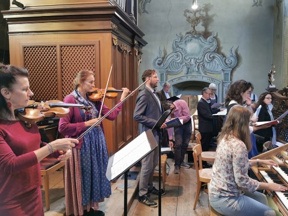 Wir konnten die „Missa in B“ (KV 275) von Wolfgang Amadeus Mozart wie geplant zur Aufführung bringen, allerdings in stark verkleinerter Besetzung: ungefähr der halbe Chor musizierte zusammen mit dem Solistenquartett Birgitta Wetzl, Elisabeth Weber, Markus Sölkner und Ewald Nagl das schwungvolle Werk in Begleitung eines Streichtrios unseres Orchesters und mit Christina Eichberger an der Orgel. Die feiernde Gemeinde und wir Ausführende selbst hatten große Freude an den schon so lange vermissten feierlichen Klängen einer Chor-Orchester-Messe!