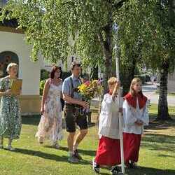 Gesegnet und gestärkt konnten die Gottesdienstbesucher:innen das neue Schul- und Arbeitsjahr beginnen. Alle Kindergarten-, Schultaschen, Unirucksäcke, Laptoptaschen...und Koffer wurden mit ihren Besitzer:innen mit dem Segen Gottes und dem Wissen "Ich bin nicht allein" begleitet. Als Erinnerung daran wurden kleine Segens- und Stärkungssymbole verteilt. Tina Schörgi lud alle ein wieder mehr zu segnen, was jede und jeder darf, und den Mitmenschen Gutes zu wünschen: durch ein Kreuz auf die Stirn beim Gute Nacht sagen, beim Anschneiden eines Laib Brotes, beim Abschied mit Weihwasser.... Alle Kinder erhielten kleine Weihwasserfläschchen und die Erwachsenen die Erinnerung, dass wir "Gott befohlen" sagen, wenn wir "tschüss" sagen, das vom französischen a dieu kommt oder "God be with you" beim Gruß "bye, bye". Ein gemischter Chor hat die Feier wunderschön musikalisch gestaltet.
