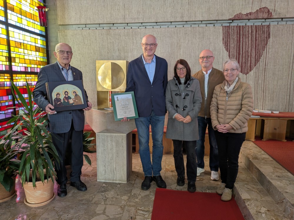Hans Koch wurde nach dem Allerseelengottesdienst am 2.11. die goldene Ehrennadel der Mesnergemeinschaft überreicht. Unglaubliche 60 Jahre lang, auf den Tag genau, hat er diesen wertvollen Dienst in der Pfarre Lieboch geleistet. 50 Jahre lang alleine, seit 10 Jahren gibt es ein