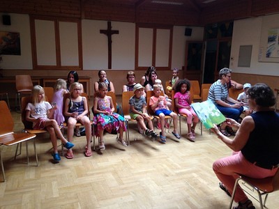 Vorlesen - Bilderbuchkino - Kamishibai und am Schluss noch eine Blindverkostung - trotz der hochsommerlichen Temperaturen hatten die Kinder großen Spass bei unserer kleinen, aber feinen Veranstaltung.